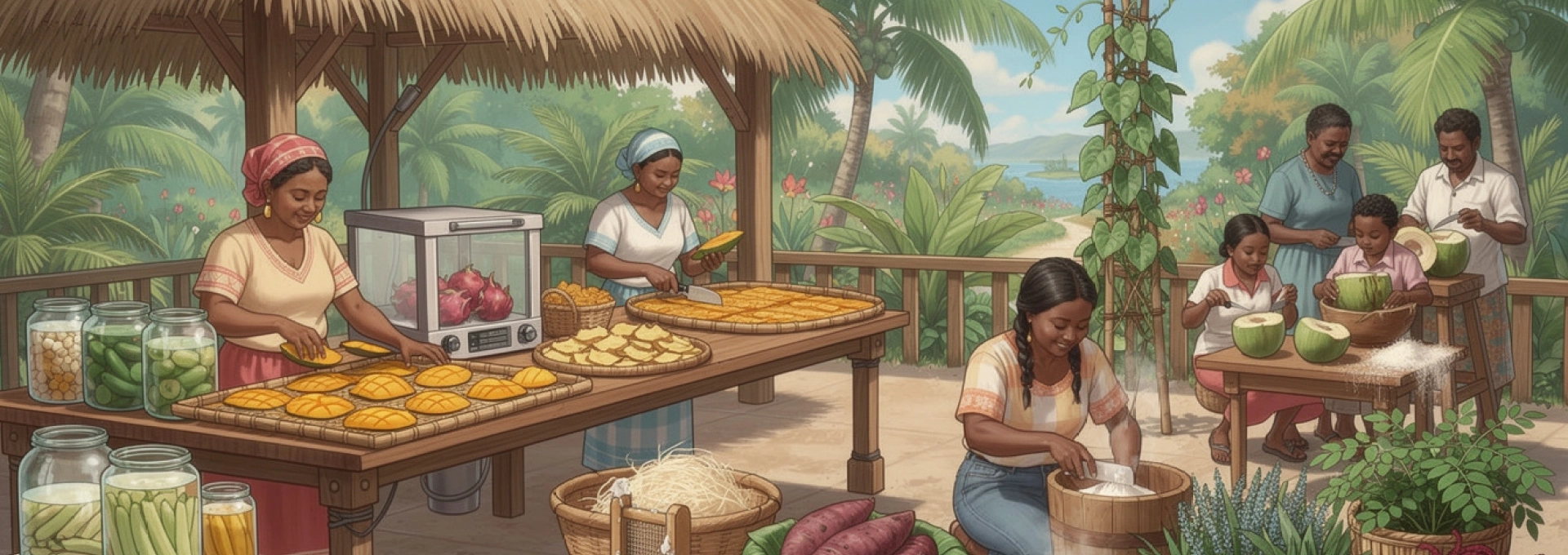 Techniques de conservation traditionnelles des mangues, papayes et fruits du dragon en climat équatorial