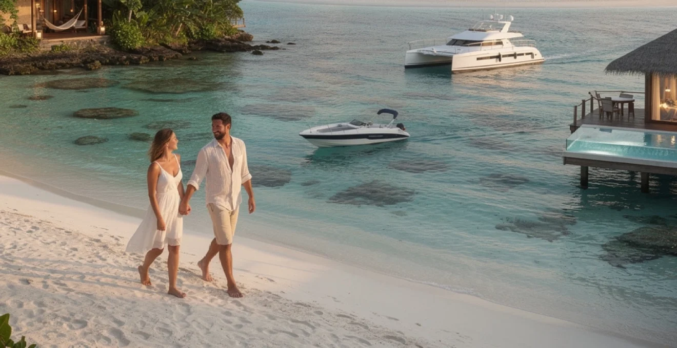 Aux Maldives, les transferts nautiques participent pleinement de l’expérience tropicale en couple. Les resorts proches de Malé sont généralement accessibles en speedboat privé ou partagé, en 30 à 60 minutes de traversée à travers les atolls. Certains établissements haut de gamme proposent toutefois des yachts privés avec équipage, permettant de transformer un simple transfert en mini-croisière romantique, avec coupe de champagne et coucher de soleil sur l’océan Indien.